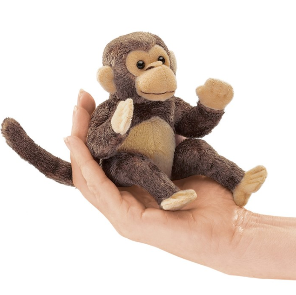 Classic, velvety-soft Monkey finger puppet is perfectly palm-sized and simply adorable! MINI MONKEY sits 5-inches tall and has a thin, long tail. Designed after the company's long-time top-selling Monkey puppet. Does not stand up on its own.