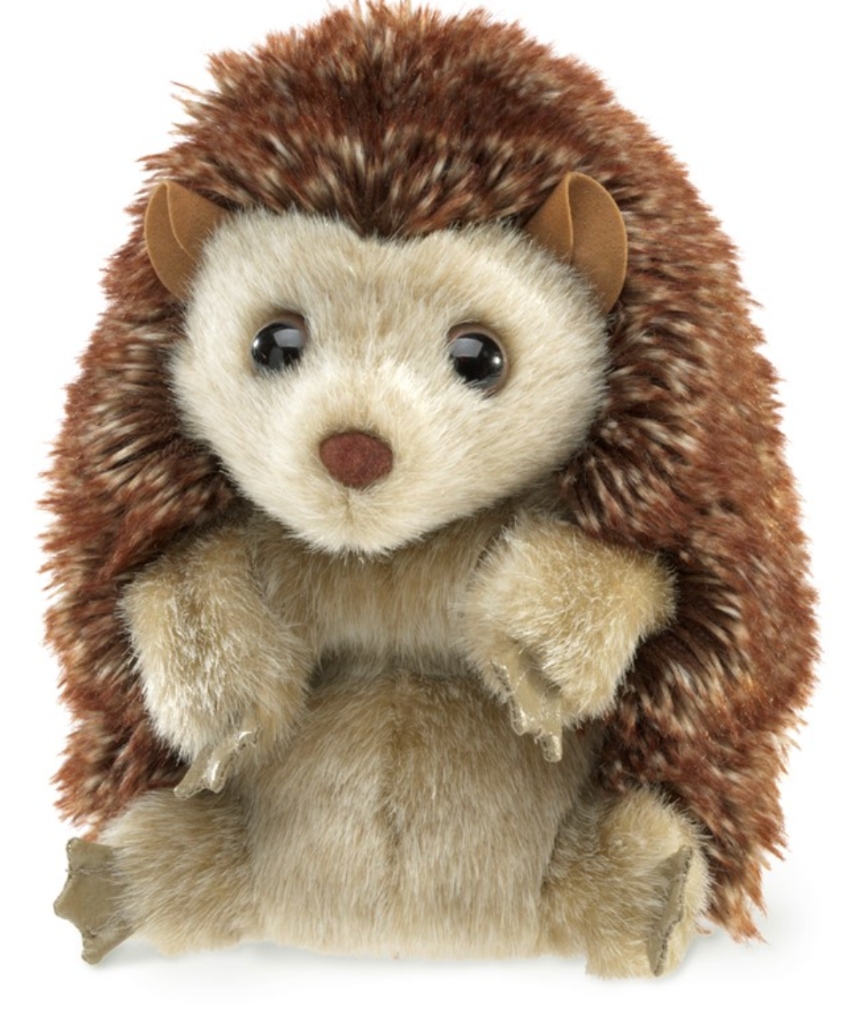 Don't hedge your bets! This Hedgehog puppet has places for all five digits, has a soft, short plush face and underbelly and a shaggier back and head. It can turn inside out to form the kind of ball a real hedgehog rolls into for protection from predators.